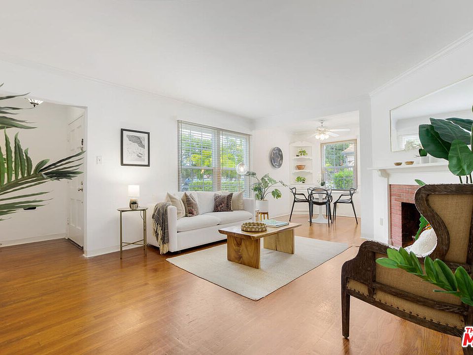 Let this Surprising, 4 Bed, 2 Bath Del Rey home on a gorgeous tree-lined street make all your dreams come true! Lovingly maintained where original details combine with contemporary upgrades: Living Room fireplace with detailed mantel & broad windows with new custom-made wooden blinds. New appliances galore in the kitchen: new range, fridge, large-capacity stacked washer/dryer, newer dishwasher, and microwave with lots of cupboard space. Ample sized primary Bedroom is peaceful with en suite bathroom & sliding doors looking over the tranquil courtyard. The courtyard with a newer redwood fence is an entertainer's dream waiting for you to host your friends and family. The artfully converted garage is approx 400 sqft of living space included in the 1,842 total square footage and is not permitted. Ready to be made into an ADU, It has sustainable cork floors & a pyramid-shaped wooden ceiling, cedar barn doors that open up to the courtyard are a must-see & French doors overlooking the back garden. Could be used as a home office, yoga/exercise studio, home entertainment room, or whatever you can imagine. The backyard has navel orange and loquat trees. Easy access to bike path to the beach, close to restaurants, shopping, and all that Del Rey, Mar Vista, and Culver City surroundings have to offer.