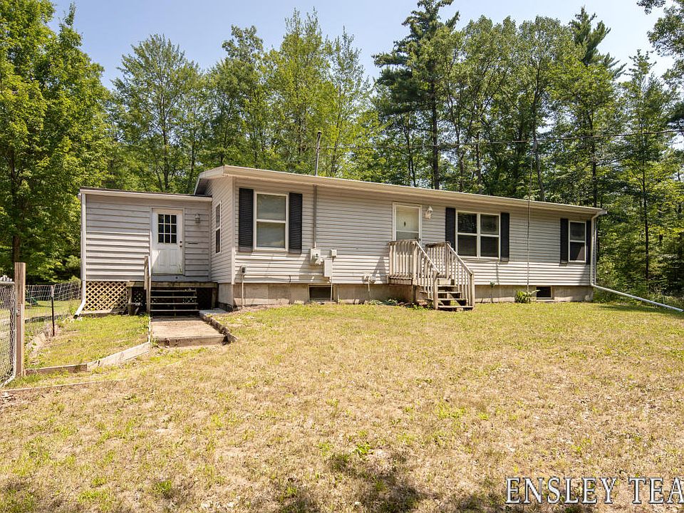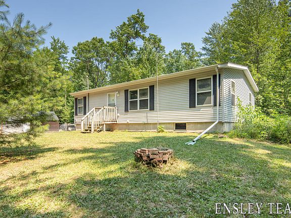 As soon as you enter the driveway you instantly feel the serenity of this 3 bedroom 2 bath home that is nestled in just over 15 acres! Peacefully wooded with a 287 ft man made stream flowing through it makes for a nature lover or hunters paradise. Back of property adjoins with Hidden Horns Ranch so you'll also have over 500 ft to sit and watch even more wildlife. All of this yet only 5 mins from the highway. 28x40 outbuilding with 10ft ceilings, 9x16 sliding door, new pellet stove and 220 electric! All 3 bedrooms and laundry on the main floor is highly desirable including a master bathroom! Kitchen includes all appliances and a new garbage disposal. Heat bills are inexpensive with the brand new pellet stove inside as well! Furnace was new in 2007 but has not been used as the pellet stove has always been source of heat! New water heater and brand new gutters. Big, clean and open unfinished full basement that was just 100% waterproofed ready for endless possibilities!
