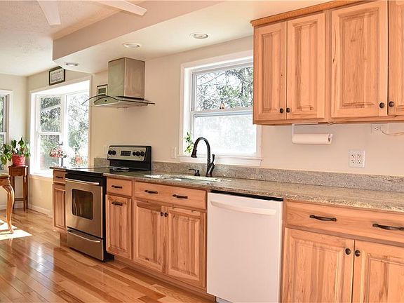 Beautifully Updated and Maintained 4 Bedroom Cape-style home set on 1.5 park-like acres! This home offers great living space with gorgeous hickory hardwood floors in main living areas. Completely remodeled Eat-in Kitchen with granite counters, custom cabinetry with built-in desk and appliances stay. Spacious Living Room & Family Room with fireplace. 2 Bedrooms on first level including Master Bedroom with Jack-n-Jill full bath. Second floor includes 2 oversized bedrooms with full bath to share. 1st floor Laundry Room. Full basement with workshop & half bath. Enjoy wooded views from the expansive deck. Newer metal roof. 2-car attached garage plus storage shed. Desirable Bass Lake Community with access to 160 acre Preserve & Lodge! Chardon Schools.