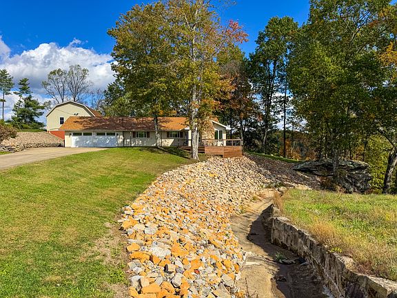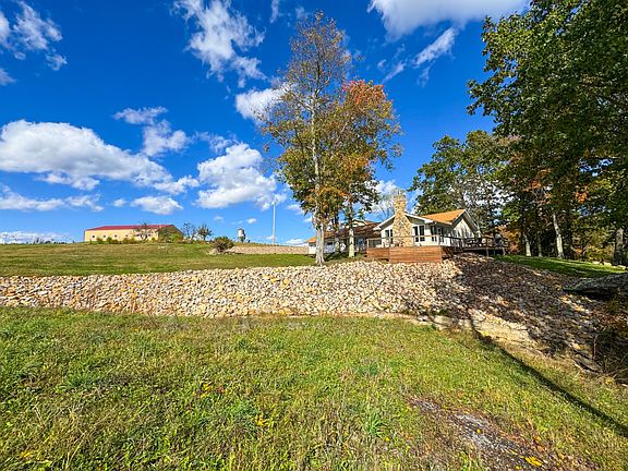 One-acre food plotWrap-around porchEstablished trailsGorgeous natural lightingSmall stock buildingRemodeled homeStunning rock fireplace