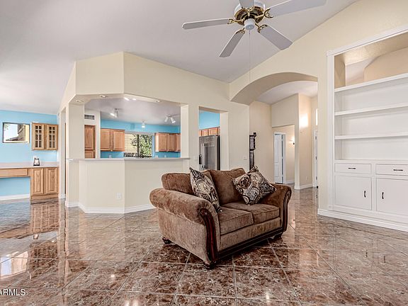 This exceptional property in the beautiful South Lake neighborhood of Estrella is a must-see! Perfectly located near scenic walking paths that encircle two sparkling lakes, this home combines comfort, style, and Arizona charm. Step inside to a spacious tile great room featuring a bright, open kitchen with a covered wrap-around breakfast bar, abundant counter space, generous cabinetry, and brand-new stainless steel appliances. Distinctive architectural touches such as elegant arches, decorative shelving, and soaring ceilings add great touches. The owner's retreat offers a double-door entry, ample wall space for furniture, and a serene atmosphere for relaxation. The owners suite looks out to the covered back patio with natural landscaping. NEW AC 2025 appliances and irrigation system. Located within the award-winning master-planned community of Estrella, you'll enjoy access to two lakes, the Star Pointe Residents Club with a state-of-the-art fitness center, two pools and splash park, a youth center, the Jack Nicklaus-designed and Troon-managed Golf Club of Estrella, plus year-round community events, farmers markets, hiking, biking, boating, shopping, and dining.