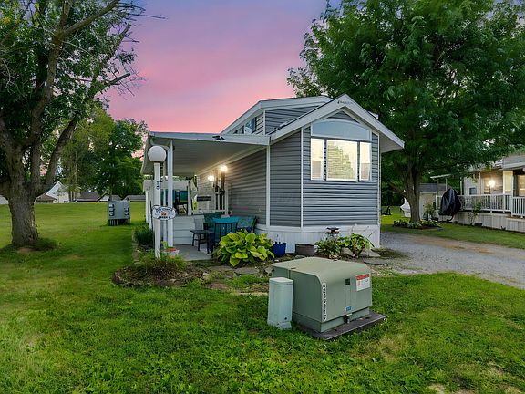 Welcome to this wonderfully maintained 2017 Kropf Island Series Park Model, ideally situated on a spacious outside lot in the desirable Indian Lake Estates community and within walking distance to lake access. This home offers comfort, style and all the amenities you need for relaxed seasonal or year-round living. Step inside to find a front kitchen with white cabinetry and black hardware, black appliances and a farmhouse-style apron sink. The bathroom includes a convenient tub/shower combo. The main-level bedroom offers cozy, private accommodations, while the spacious loft provides ample room for a second sleeping area or bonus space for hobbies. Outside you will enjoy summer evenings on your covered porch/deck, or gather around the firepit with family and friends. The shed offers storage for tools, bikes, or seasonal decor. Relax and enjoy the inground pool, basketball court, shuffleboard, and putt putt golf. The shelter house is a great place to host parties and sits beside a playground area for the kids. Lot rent is $495 per month, plus applicable charge backs which is around $41.00 a month and includes: water, sewer, trash, snow removal of common areas. Boat storage available for an additional fee. Brand New AC August 2025. All furniture, appliances, & outdoor patio furniture to remain. Golf cart is negotiable.
