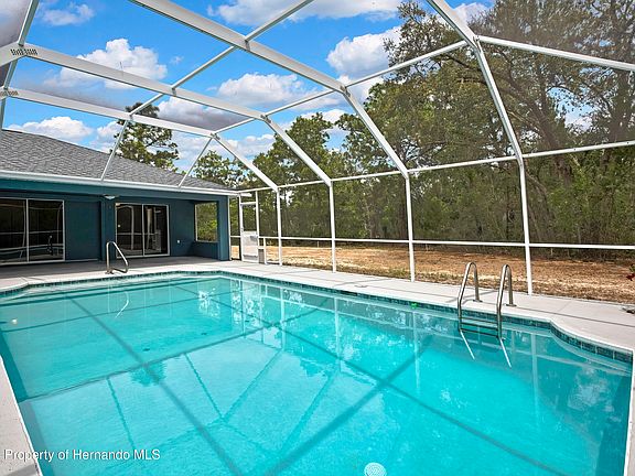 2185 SF Liv 3 Bedrooms and 2 full Bathrooms. Sit on Large pool Deck Next To 16 X 30 Sparkling Pool Just resurfaced in Dec 2023, New Septic Field 4-15-25. This Oversized .55 Acre Lot allows for a Large Workshop or Garage in back of Home. No HOA so Bring Your RV and Boat. Step Into The Open Floor Plan With Vaulted Ceilings and All New Paint In/Out While You walk on The New Porcelain Floors With New 5 1/4'' Baseboard Thru out. The Updated Wood Fireplace Jumps out and Offers A cozy Elegance for those Winter Nights. All New Ceiling Fans And Can Lights Added, and Exterior lights too. All New Stainless Steel Appliances, Washer and Dryer Too. Pool Pump Replaced 12/24, Roof Replaced 9/25/23, AC 7/19/17. New Septic Field 4-15-25. Home is Well Insulated Too. Plenty of Storage with 10X16 Storage Shed.