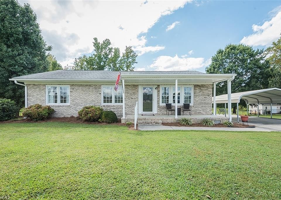 Charming All-Brick Ranch Near Elon University! Welcome to this delightful 3-bedroom, 1.5-bath ranch nestled on over half an acre in a peaceful setting, with timeless curb appeal and a welcoming front porch, this home offers the perfect blend of comfort, character, and convenience. Sunny kitchen featuring crisp white cabinetry, a stylish backsplash, and stainless steel appliances including range, dishwasher, and microwave, hardwood and tile flooring throughout, open concept for relaxing or entertaining. Beautiful, like new tile shower, expansive lot with plenty of room to garden or play and a storage building. Covered carport and a cozy patio for outdoor gatherings. City septic system with no city taxes, just minutes from Elon University, shopping, dining, and everyday essentials.