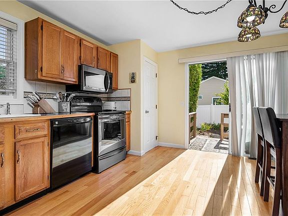 Beautiful, well maintained end unit Town house in the desirable Oakridge Condominiums. Convenient location, close to highways, retail, restaurants and schools. Perfect for first time home buyer, empty nesters down sizing, or someone who rents and is looking to buy! This home has hardwood floors throughout , newer brushed stainless appliances, finished basement with washer/dryer, and a slider off of the kitchen which leads to a private deck. Two nicely sized bedrooms and one and a half bathrooms. Affordable HOA includes Sewer, water, grounds maintenance, snow and trash removal. Includes 2 parking spaces. OFFERS DUE MONDAY 9/16 @ 5pm