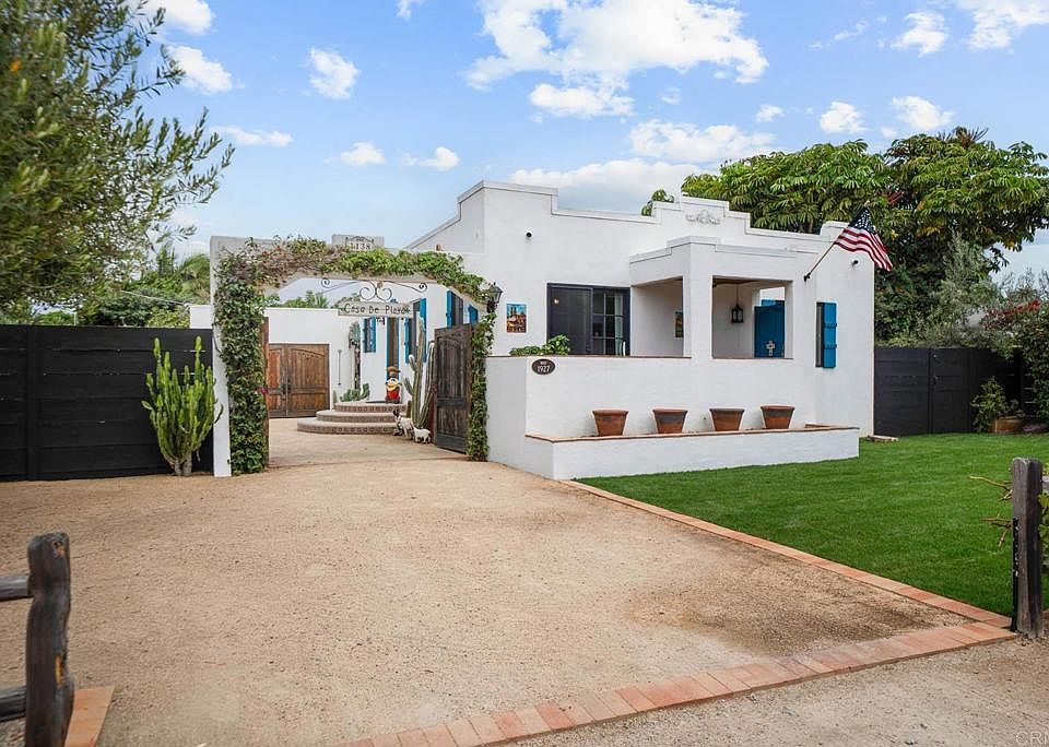 Step back in time and into the romance of Old Mexico and early California with this 98- year-old colonial Spanish bungalow, gracefully set on nearly a quarter- acre, this rare retreat offers both space as well as seclusion, in the highly sought-after Carlsbad Village. Behind the gated entrance, a welcoming courtyard evokes the charm of a mini hacienda- a serene space for morning coffee, intimate gatherings, or simply basking in the coastal breeze. This distinctive, light-filled retreat offers an airy open floor plan with an abundance of fresh air and ocean breezes. This home's timeless architecture blends warmth and history, offering authentic character rarely found today. A unique and beautiful feature is a hidden speakeasy-style cellar adds a whisper of whimsey and character, ideal for wine, storage or creative flex space. The lush grounds are a true gardener's and gourmet's dream, boasting 6 varieties of avocado trees along with lemon, orange, tangerine, loquat, pomegranate and olive trees. Whether you envision preserving its vintage soul or enhancing it with modern touches, this unique property offers a rare opportunity to own a piece of Carlsbad's living history, all within strolling distance of the village's lively cafe's, boutiques, coaster, and the beautiful beaches. Must see this hidden gem to fully appreciate.