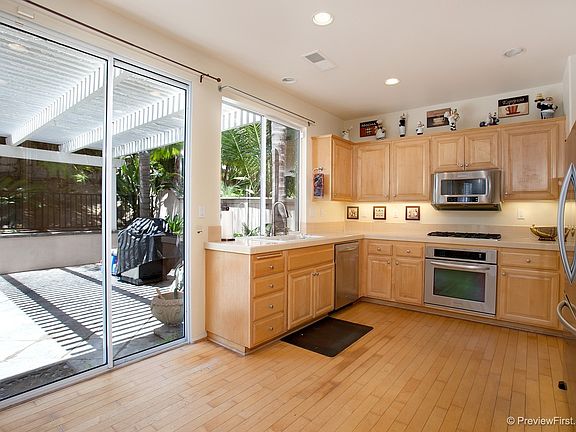 Mendocino which is known for it's private, small community feel and tree-lined streets. Quiet and tranquil yet only minutes to walking trials, amazing beaches, shopping, restaurants, entertainment and award winning schools- Mendocino is quintessential coastal living at it's finest. Your new home is tucked away on an interior cul-de-sac street and boasts one of the larger backyards in the community. Awaiting you is a huge grassy area for the kids or fido to play, a generously sized patio perfect for summertime BBQ's and numerous mature trees offering privacy and cool breezes for those hot summer days ahead. The home is flooded with natural light, abundant windows and vaulted ceilings. Rich maple wood floors adorn the family room, dining room, kitchen and staircase. The kitchen features stainless steel appliances, lots of counter and cabinet space and opens to the family room creating the perfect area for entertaining or simply relaxing by the warm glow of your new fireplace. The living and dining room are spacious and offer endless options for entertaining or a large family gathering. The master bedroom is generously sized and overlooks palm trees bringing warm, fresh breezes inside. Enjoy the luxury of your very own private master spa which features dual sinks, a soaking tub and separate shower. The additional two bedrooms are also nicely sized. The fourth bedroom is currently being used as an office and features built-in desks, cabinets and bookcases. (Office can easily be converted into a fourth bedroom or would make a great loft or craft room.) The attached 2 car side-by-side garage with additional storage adds extra convenience and room to grow. Home also features central heating and air-conditioning. Mendocino is a small community of detached homes with an established HOA whom maintain the streets, common areas and landscaping in the front of your home. This premium location must be seen to truly appreciate. If you have been searching for the perfect Encinitas home for a while, look no further, this is it! But hurry, this home won't be around for long. All Information Deemed Reliable but not guaranteed. Room Sizes and Square Footage are Approximate. Buyer to verify all, including Mello Roos fees, and all MLS information prior to COE. Seller to consider all offers from $699,000 to $714,000.