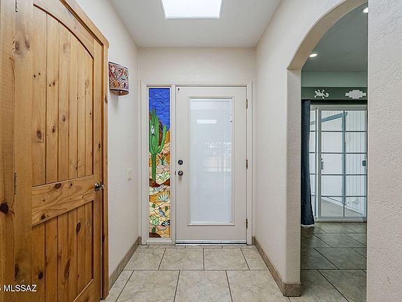 Looking for a country/farmhouse feel? This 2 bedroom 2 bath exudes country charm. Large front covered patio area with 2 fans, plus a walled separate front patio w/ views to Mt Wrightson presents a perfect area to enjoy the views. Lots of cabinetry in kitchen including a closet style pantry, w/ numerous slide out shelves. Eat in kitchen and separate dining area. Knotty Alderwood barn doors on the secondary bedroom/office/den, add to the farmhouse/country feel. Az room has a separate wall unit AC and the back patio is all pavers=maintenance free! Close to Desert Meadows Park, post office and shopping. Come live the Green Valley lifestyle! Low HOA and all GVR has to offer is awaiting your enjoyment.Roof w/5yr warranty 2025.Seller is Arizona Licensed RE agent.