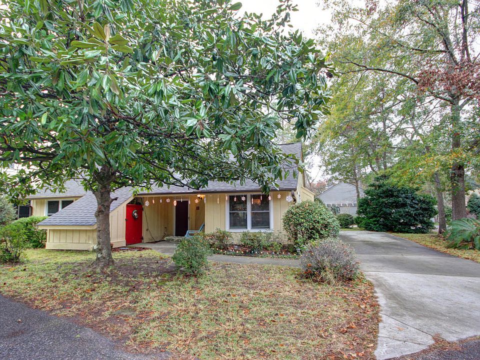 A rare find in central Mt. Pleasant! One story living with dual masters and a fenced-in backyard in one of the best neighborhoods in Charleston. This house is move-in ready with hardwood floors throughout the main living area, tile in the kitchen, and carpet in the bedrooms. As you walk in, you'll find smooth, vaulted ceilings in the family room as well as a wood-burning fireplace. There is a separate dining room that leads into the galley-style kitchen with an eat-in dining area. The two master suites are nice sizes with walk-in closets. Off the family room, there is an enclosed porch that has been turned into an office with built-in shelving. The fenced-in backyard is the best... artificial grass (always green, no lawnmower needed, and great for pets!) and a patio area. X flood zone.