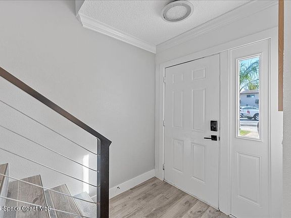End unit Beachside townhouse with 2 Beds and 2.5 Baths located in the highly desirable town of Indian Harbour Beach! This home has been FULLY RENOVATED and the owner spared no expense on high quality upgrades. Well maintained neighborhood with a LOW HOA fee of only $80 a month! Roof was replaced in 2022. HVAC in 2021. Tankless hot water heater installed in 2023. The interior renovations include quartz countertops, white shaker style cabinets, soft close hinges, LED lighting, and MORE! All flooring is porcelain wood-look tile and vinyl plank in the bedrooms. All new appliances installed in 2022. Custom welded stair case rail. A Custom built pergola with a metal roof covers the fully fenced in paver patio. The slider was replaced in 2022 and is hurricane rated. HOA fee includes landscaping, pest control, and exterior paint. Gleason park is walking distance from this location and the beach is only a mile away. Enjoy watching rocket launches from the comfort of the North facing bedroom!