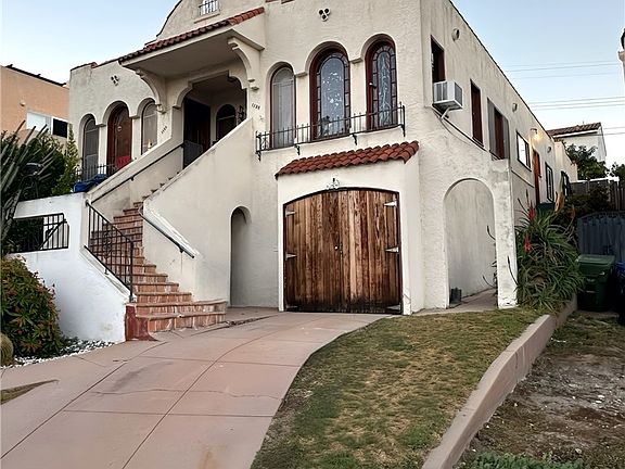 Step into the timeless allure of this 1925 Spanish-style duplex, located on one of the most desirable streets in the heart of San Pedro, near Averill Park, Cabrillo Beach, historic downtown and the new LA Waterfront. Family owned and cherished for over 48 years, this rare opportunity to live on one side and rent out the other won’t last! Original hardwood floors grace both units and seamlessly blend with the rich Teak crown molding and arched casement windows that usher in natural light, cool breezes and a touch of old-world charm. Unit 1 opens to a bright living room with coved ceilings, plaster walls and adjoining dining room. Through the kitchen is a separate laundry room and exterior access to the side yard, front yard and the private, fenced back courtyard. This one-bedroom retreat with small bonus room and full bath still boasts the original pink bath tile and charming penny floor tiles. Unit 2 unfolds as a tastefully remodeled haven with two bedrooms, two bathrooms, updated kitchen and a laundry room with exterior access to both the front and back yards. Along each side yard is access to your own finished storage room - perfect as a work shed, home office or private retreat. Each unit includes a single car attached garage with private driveway. Other amenities include an electric vehicle charger and A/C.