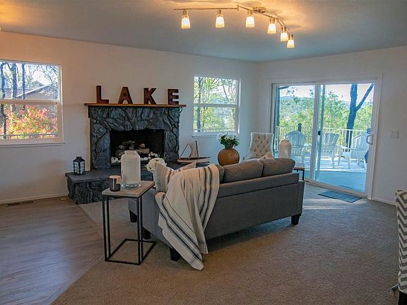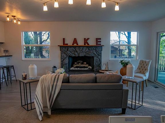 Gorgeous remodeled Lake View home. Owner financing available. Downstairs Guest quarters with outside access. Quiet circle in Lake Wildwood. Least expensive Lake View home on the market! Mudroom entry into Living room/Dining combo with beautiful grey stone gas fireplace. All Stainless kitchen has breakfast bar and pantry cupboard. Remodel includes new paint, new carpet, refinished wood floors, new wood-look vinyl flooring in bathrooms, newly painted concrete floors downstairs in 3rd bedroom/guest quarters