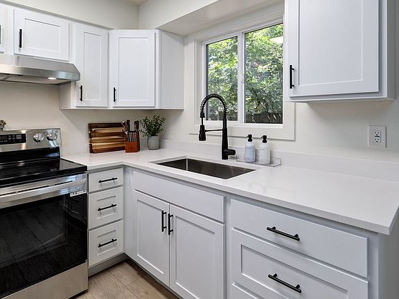 New paintLight filtering draperyMatte black door handlesStainless steel upgraded appliancesNew cabinetryLarge mirrorVanity with quartz countertops