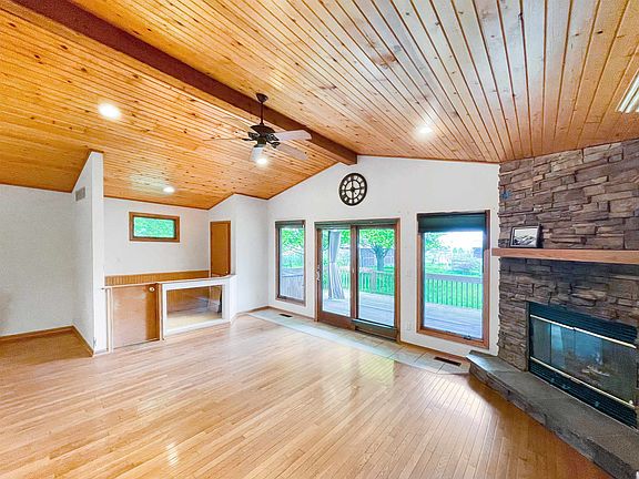 Located on 10.342 acres zoned for agriculture, 11380 IL Route 76 merges country charm with contemporary living along a bustling route. This 2-story home in Poplar Grove is ideal for those who appreciate rural aesthetics while enjoying convenient access to nearby amenities. The residence boasts 3 well-appointed bedrooms and 1.5 bathrooms, tailored for comfortable family living. The upper level hosts all bedrooms, a full bathroom, and offers access to a large, unfinished attic, perfect for storage or future enhancements. A practical laundry setup is also integrated into the upper bathroom. The main floor features a spacious kitchen with butcher block countertops and a center island with a gas stove, catering to culinary enthusiasts. A pass-through cabinet connects the kitchen to the formal dining room, ensuring seamless entertainment. The living room, anchored by a charming brick fireplace, includes a dining area with an L-shaped built-in bench that comfortably seats 8-10 guests, creating a welcoming atmosphere for gatherings. Sliding glass doors open to a 23.7 x 13.11" wooden deck, providing an excellent space for outdoor entertainment and relaxation. Additional features include a first-floor laundry room with extensive storage and an attached 3.5-car garage with a concrete ramp for easy access. An office space adjacent to the family room offers a secluded area for work or study. Enhancing the property's utility are three large outbuildings in the backyard, suitable for various purposes such as additional storage, workshops, or other agricultural activities. The home is equipped with 2 separate GFA units, one on each side of the basement, ensuring efficient heating across the property. 11380 IL Route 76 is more than just a house; it’s a lifestyle choice. Showcased for its perfect blend of rural aesthetics and modern conveniences, this property invites you to schedule a visit today and discover why it's an excellent choice for those seeking a balance of country living with easy access to urban conveniences.