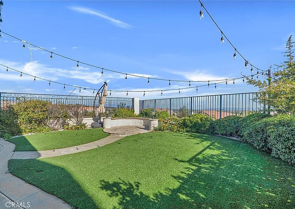 Nestled at the end of a quiet cul-de-sac within the prestigious Sorrento gated community, this exceptional residence exudes sophistication and charm. Its striking curb appeal is highlighted by a grand flagstone entry, framed by stately lampposts. Step inside to be greeted by soaring two-story ceilings, an elegantly curved staircase, crown moldings, recessed lighting, and exquisite high-end wall finishes. Rich wood flooring enhances the lower level, while brand-new carpeting adds warmth and comfort upstairs. The formal living room is bathed in natural light, featuring a breathtaking chandelier that flows seamlessly into the dining area. Designed for both relaxation and entertaining, the inviting family room boasts a cozy glass fireplace and custom built-ins, forming an expansive great room with the adjoining gourmet kitchen. A chef's dream, the kitchen is outfitted with a central island, granite countertops, a built-in gas range, an electric oven, a microwave, a GE Monogram refrigerator, and a deep pantry. Perfect for guests, the main level offers a convenient bedroom and a beautifully appointed three-quarter bath. A dedicated laundry room, complete with a utility sink, provides direct access to the spacious three-car garage, which includes an EV charger. Upstairs, a versatile loft area presents endless possibilities for a home office, playroom, or additional living space. Two well-sized bedrooms share a full Jack-and-Jill bathroom with a double vanity. The luxurious primary suite showcases breathtaking panoramic views, an oversized walk-in closet, and a spa-like en-suite bath featuring a separate shower and a jetted soaking tub. Notable amenities include a central vacuum system and a full security setup with five wired cameras, plus a Wi-Fi-enabled backyard camera accessible via a mobile app. Outside, a covered patio and custom seating area offer the perfect backdrop for enjoying stunning vistas, while artificial turf ensures effortless year-round beauty. Residents of Sorrento benefit from exclusive access to two community pool areas with spas, 24-hour guard-gated entrances, and proximity to premier outdoor recreation, shopping, and dining.