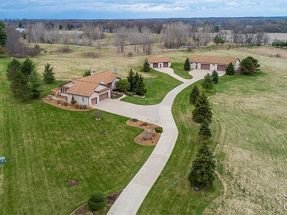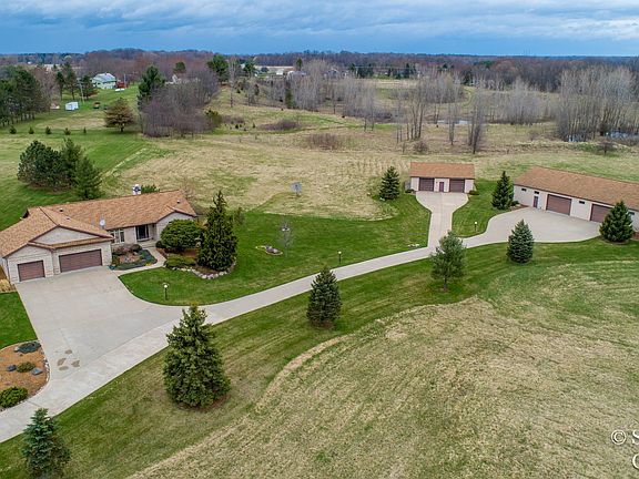 One owner will always be on site for showings. First time being offered. Custom built executive brick ranch offers master suite with oversize walk in shower & private closet. Additional bedroom on the main being used as office. Large kitchen with center island & an adorable four season porch which overlooks 7.6 acres. Walk out lower level exhibits pride of ownership with additional kitchenette, wet bar area, billiards/rec room, nice size bedroom & full bath. Attention to detail in this home. Buried propane tank, 48 gallon water heater & new furnace are just a few. Heated 40x80x12 garage with private office, bath & triple drains. Store an RV, classic car or boats. Additional garage is 40x30 with more storage space for lawn equipment, snow blowers and toys. Private drive with minimal
