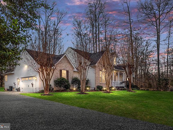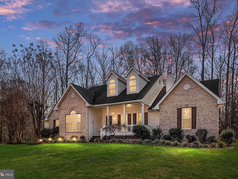 Welcome to this dream of a home nestled on a private 2+ acre lot, directly opposite a serene nature preserve, with no HOA. This main-level living, custom-built 3-bedroom, 2-bathroom cape-cod style home with nearly 3,600 square feet combined, offers a perfect blend of sophistication and tranquility, creating an idyllic retreat in the heart of nature. As you approach, the inviting front porch beckons, providing an ideal spot to savor the beauty of spring mornings while sipping a cup of coffee, surrounded by the sights and sounds of nature. Step through the front door into the living room, where the ambiance is instantly elevated by a striking stone fireplace, vaulted ceilings, and expansive windows, bathing the space in natural light and offering serene views of Virginia’s breathtaking colors, and diverse wildlife throughout the seasons, all while creating a warm and welcoming atmosphere. The kitchen, a culinary haven, is designed for both functionality and aesthetics. A chef's dream, it boasts a large center eat-up island and expansive windows offering more panoramic views of the home's natural surroundings. For al fresco dining, the spacious covered rear patio provides a perfect setting, allowing you to relish meals while taking in the scenic backdrop. Entertaining is effortless with a formal dining room that exudes sophistication and charm. The thoughtful split bedroom layout ensures privacy for all, making this home ideal for those who appreciate personal space. The large primary ensuite is a sanctuary within itself, featuring a vaulted ceiling, spacious walk-in closet, and a private bathroom adorned with a soaking tub and a separate shower. The layout was meticulously designed to create a serene and luxurious retreat. The possibilities are endless with the full unfinished basement, offering ample storage space and the potential for future customization to suit your preferences. Whether you envision a home gym, entertainment area, or additional bedrooms, the basement provides a blank canvas for your creativity. This exceptional home is within walking distance to Caledon State Park and the Dahlgren Heritage Trail making it easy to take advantage of outdoor recreation and it is conveniently located for an easy commute to NSWC Dahlgren, Harry W Nice Memorial Bridge, NSF Indian Head, Quantico, Washington DC, Richmond, as well as Lealand and Brooke VRE Stations. Don't miss the chance to own this quality-built haven with captivating natural vistas from every window! This home is not just a residence; it's a lifestyle. Experience the harmony of nature, the elegance of thoughtful design, and the convenience of modern living in this exceptional property. Your dream home awaits.