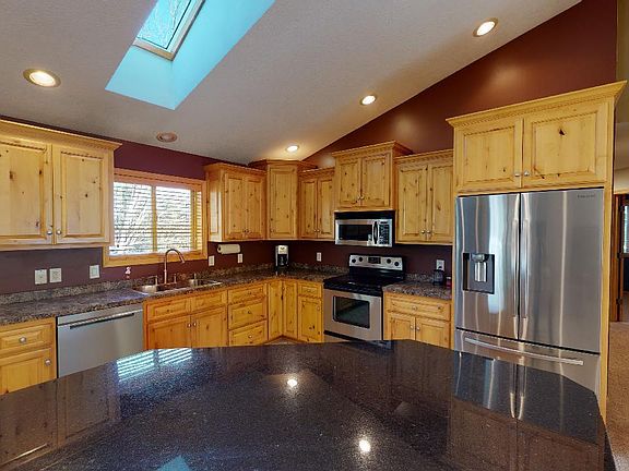 Welcome home to this spacious 4BR/2BA Zimmerman home located on a wooded 3.69 acre lot w/mature oaks/maple/apple trees w/wildlife views--deer/turkey/rabbits! Within blocks from Lake Fremont & walking distance to Grams Regional Park! Open/vltd upper level filled w/natural light--great for entertaining! Kitchen w/knotty alder cabinets, stainless appliances (fridge/dishwasher new in 2020), center island w/granite top + a skylight! Walkout to the deck w/access to backyard/patio--gas line for your grill! 3BRs & full BA on upper level too! Walkout LL family rm w/gas frplc w/stone surround--wired for surround sound, laundry room, utility rm & crawl space for storage! Master suite on LL w/spa like bathroom & walk-in closet! Attached 3 car heated/partially insulated oversized 36x30 garage w/hot & cold water--attic storage space! 6 panel maple doors, recessed lighting, new roof in 2019, fun atv/bike track in field, firepit + more! Setup your showing today!