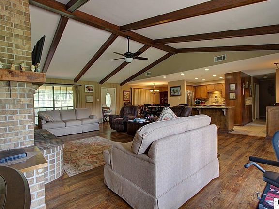 Country setting- yet close to town. Here we have a 3 bedroom 2 bath brick home on 4 acres of mature tree shaded land. ( Additional 2 ac+/- on south end can be purchased separately). Spacious floorplan, large open living-kitchen combo with masonry fireplace, attached double carport, and detached storage building and RV shed, covered front and rear porches, with open patio.  Home has been updated with new paint, flooring, roof, whole home generator etc... We'd love for you to schedule an appointment today and come take a look around. All measurements, acreages, square footage, amenities are approximate and should be verified via buyer inspections.