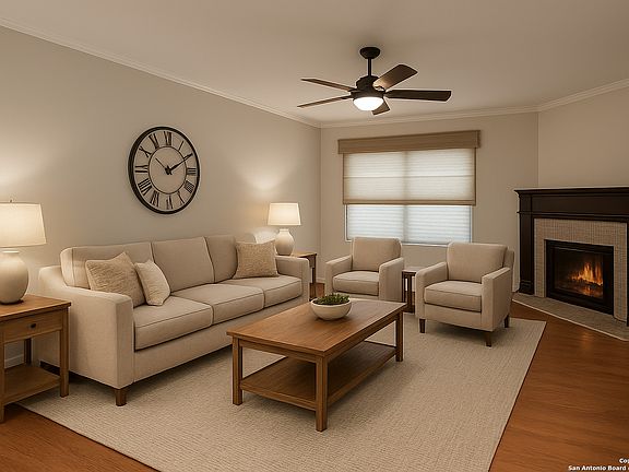 Welcome to Parkwood! This beautifully updated 4-bed, 2.5-bath home is ideally located near UTSA, USAA, and all the conveniences of the I-10/1604 corridor. Freshly painted throughout, this spacious two-story features brand-new flooring and plush new carpet, offering a crisp, move-in-ready feel from the moment you step inside. The main living area boasts abundant natural light, a charming wood-burning fireplace, and an easy flow into the dining spaces. The kitchen is a standout with granite countertops, a breakfast bar, and plenty of prep and storage space, making it perfect for cooking and entertaining. Upstairs, a generously sized bonus room offers endless possibilities such as a second living area, playroom, home office, or media space. The primary suite includes a refreshed bathroom featuring a new vanity, updated mirrors, and new countertops, providing a clean, modern feel. The secondary full bath offers an added luxury with a jetted spa tub, perfect for relaxing after a long day. All secondary bedrooms are roomy and comfortable, with excellent storage. Step outside to another highlight of this home, a huge covered patio ideal for outdoor dining, relaxing, or hosting gatherings with friends and family. The backyard provides plenty of space for pets and play. Situated in a prime Northwest San Antonio location, you'll enjoy quick access to La Cantera, The Rim, Six Flags, UTSA, USAA, Loop 1604, and IH-10, making commuting and daily errands a breeze. Walking distance to Scobee Elementary School. Move-in ready, beautifully updated, and located in one of the area's most desirable neighborhoods-don't miss your chance to call Candle Park home.