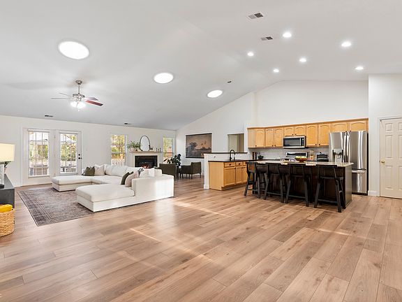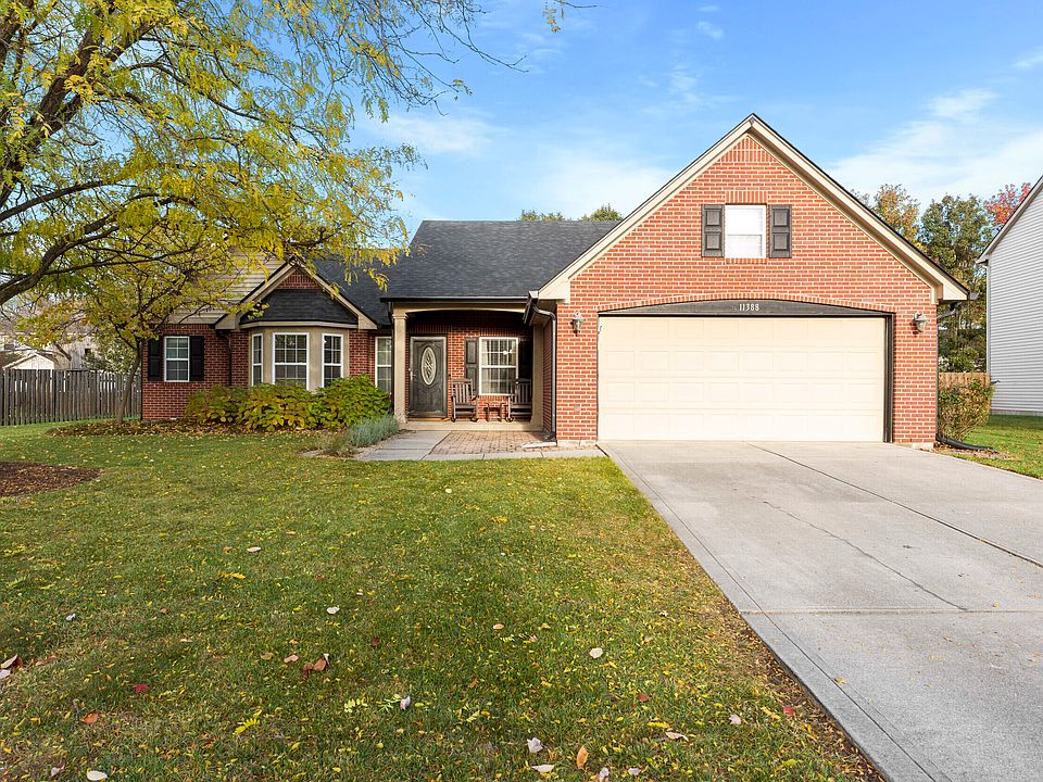 Looking for a ranch in Fishers? This one is a must-see! Step inside and be wowed by the truly open floor plan featuring vaulted ceilings and beautiful luxury vinyl planks that highlight the spacious great room, hearth room, dining area, and kitchen. The kitchen is designed to impress with maple cabinets, granite countertops, a HUGE custom granite island, a new and updated tile backsplash, and all recently upgraded appliances (including a double oven). The primary suite is filled with natural light and offers two closets, an updated walk-in shower, and a relaxing garden tub. Three additional bedrooms share an updated full bath, with the fourth bedroom currently used as a home office (but use it how you like!). A large laundry area provides extra convenience, while outside you'll find a stamped concrete patio and fenced backyard-perfect for entertaining or relaxing. Ideally located near the newly constructed Fishers Event Center, Nickel Plate District, shopping, restaurants, and more, this home combines comfort, style, and a prime Fishers location!