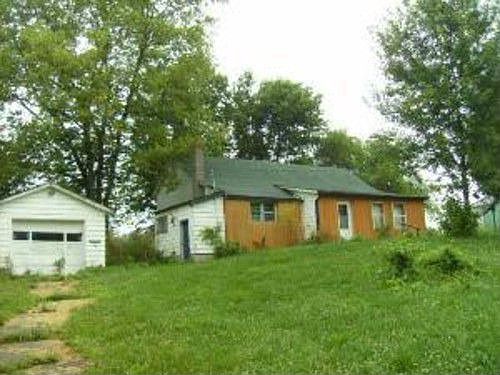 Hilltop country setting overlooking woods surrounding Big Blue River. Includes 17 +/- acres of rolling ground. Great location for cattle or horses. Morton pole barn, perfect for storage. house needs rehab. Being sold "as-is".