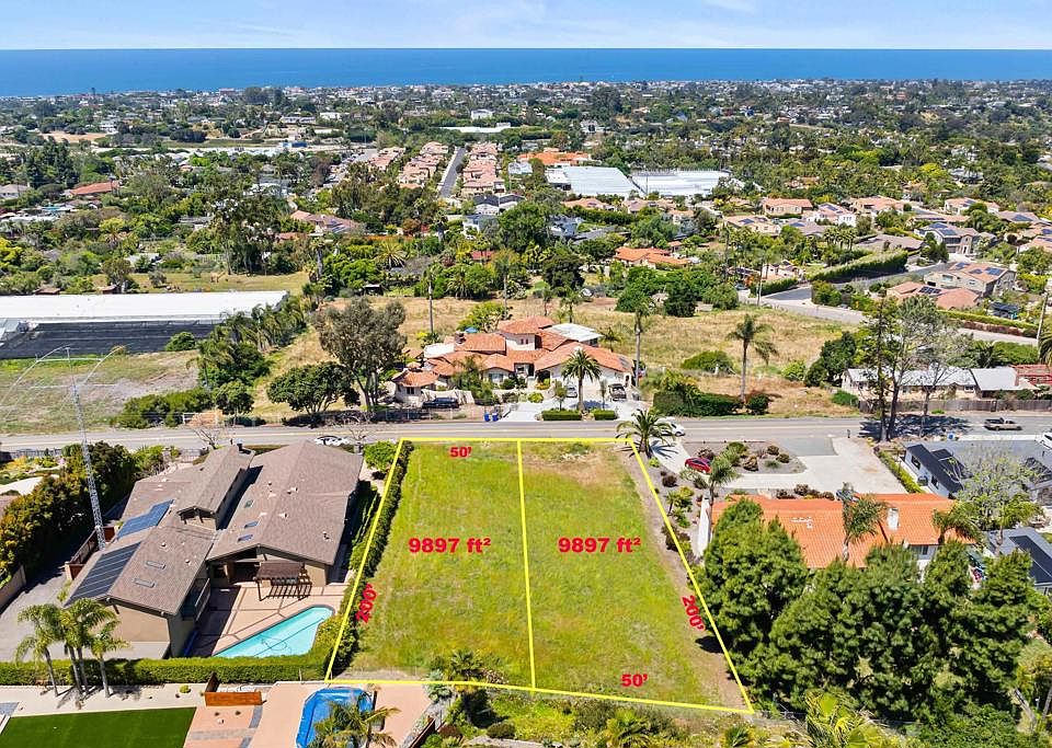Permit-ready and 180º ocean views! Fully entitled 9,897 sq ft ocean view lot in prime Encinitas location, with approved grading and architectural plans for a 3,863 sq ft main residence plus 605 sq ft detached ADU with private terrace and separate address. Ideal for a builder, developer, or discerning homeowner looking to create a custom luxury compound. Optimally situated on the quiet end of Saxony Road, one mile from the beach. Took over 3 years to secure permits. Renowned architect Scott Maas and his team at FieldxStudio delivered an exceptional design.
