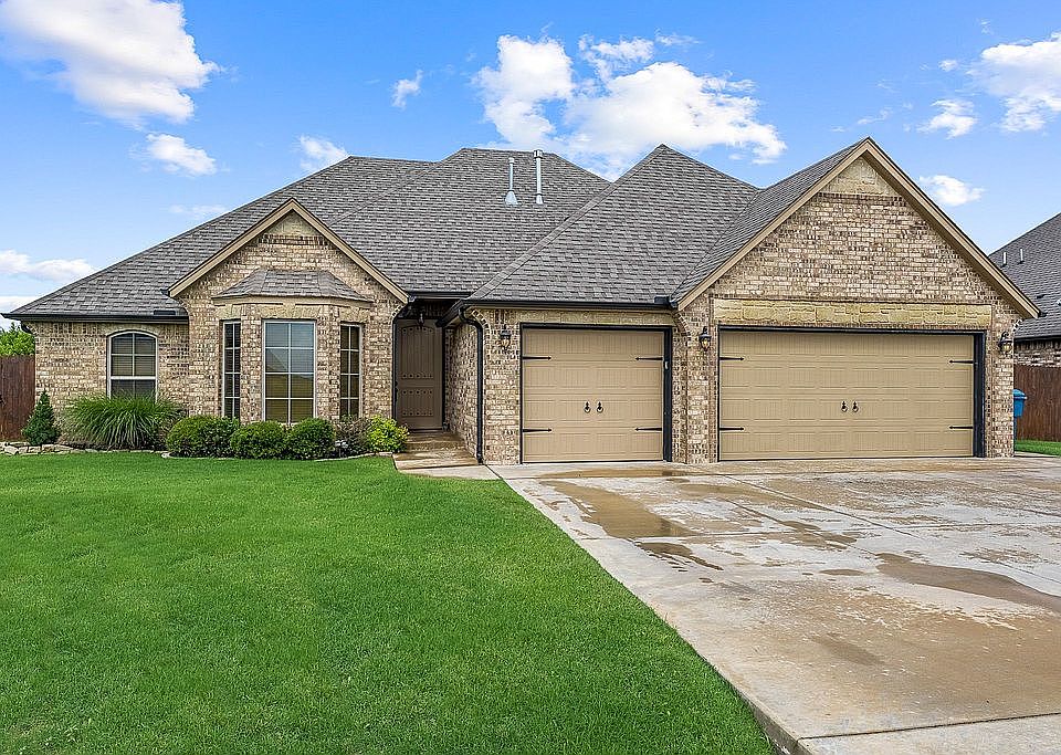 Call the home owner first to get the best pricing; Aaron @ 405.802.3403 This beautiful ranch is located in a family-friendly neighborhood, on a quiet street, in a country setting, close to easy access to Mustang via Highway 4 or OKC via Highway 37. The home has carpet, hardwood and tile floors, vaulted ceiling, an office/study, and features a fireplace and a security system. Also, there are 3 bedrooms, 2 full baths and laundry. The kitchen features tile floors, granite counters, tiled backsplash, stainless steel appliances, pantry, breakfast nook and breakfast bar. Appliances stay with the home. The master bedroom features carpet floors, tray ceiling, separate sitting area and walk-in closet. The attached master bath includes tile floors, granite counters, jetted tub and tiled shower. Outside you'll find a porch and patio overlooking the yard with wood privacy fence that includes a great view with outdoor fireplace.