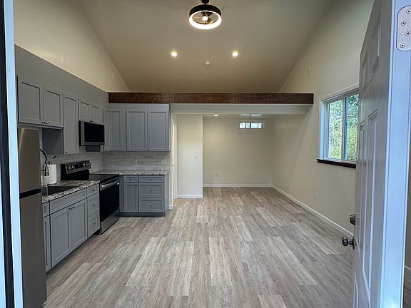 Features: Washer/dryer, mini-split heat/AC, full fridge, stovetop/oven/microwave, disposal, soft-close cabinets, granite counters, tile backsplash, ceiling fan, dimmable LEDs, LVP flooring, clothing closet.