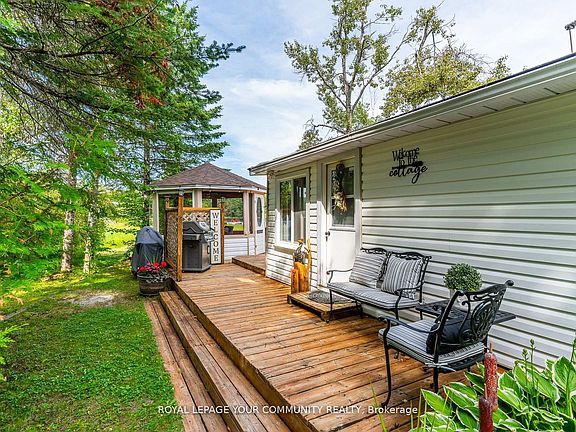 Welcome to your year-round family cottage on Davis Lake, where family memories are waiting to be made! This cozy 4-season cottage boasts 3 bedrooms, and a large living and eating area. Davis Lake, is a well sought after Lake, spring fed, and a great size for all your families desires, such as swimming, boating, water skiing, fishing and paddling. Enjoy morning coffee in the stylish gazebo, or out on the large deck, while watching beautiful sunrises, or just to have the relaxation time you've been waiting for. Walk out to an island dock, to swim, boat, or sit to further enjoy the lake view. Additional guest or family accommodations are provided in the (10' x 8') bunkie, complete with electrical service, for light, heat and all your family gadgets. Another building hosts a 15' x 10' insulated room, for further sleeping, lounging or office use, with a 2-piece seasonal bathroom. There is a carport with a concrete pad to fit one vehicle, plus 3 workshop / storage areas, with interior space for small vehicles such as an ATV and snowmobile, and a 3-season washer and dryer area. All of this on a rare to have, large flat lot suitable for family fun activities, or gatherings, with plenty of parking space. Enjoy winter from this cozy cottage. Skating, snow shoeing and cross-country skiing are just out your door, or head to downhill skiing at Sir Sams Inn Ski Resort. For snowmobilers, you are in the heart of snowmobile trails! The village of Minden is less than a 15 minute drive away, providing access to all essential amenities and restaurants. Experience the ultimate in family-friendly cottage living at this Davis Lake Cottage.
