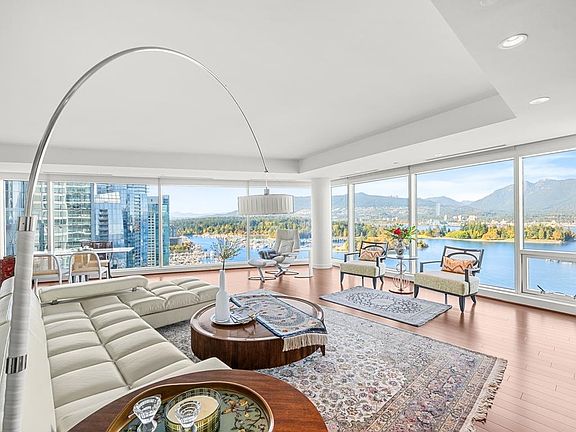 TWO HARBOUR GREEN WATERFRONT ESTATE HOME - A world-class home with 3,636 Sq. Ft. of interior living and almost 300 Sq. Ft. of exterior living featuring 3 beds, 3.5 baths and incredible 180-degree unobstructed North West views of water, mountain and city. Features include; open floorplan, hardwood flooring, northwest-facing living and dining rooms, entertainers kitchen with Miele, and Sub-Zero stainless-steel appliances, grand primary suite with designer walk-in closet and full spa inspired ensuite. Hotel amenities incl. 24-hr concierge, security, pool, steam room, sauna, whirlpool, games room, guest suite, virtual golf. 3-stall private garage w/ large storage, perfect for luxury vehicles. This is true world-class living close to Stanley Park, marina, Seawall, fine dining, & high-end shops!