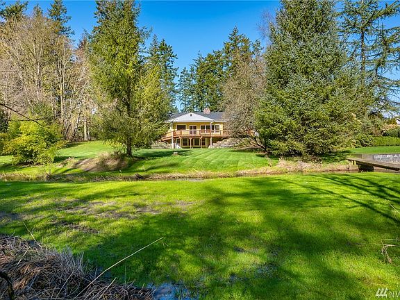 Situated on 1 acre of land this home is a must see with a serene setting down a private and quiet lane in Bellingham. Large wrap around deck, overlooking the picturesque creek, creates the perfect backdrop for entertaining. The beautiful lawn with mature landscaping is ready for your spring touches. Inside this light and bright home you will find 2 fireplaces, hardwood floors, and rec room. Exterior complete with RV parking, circular driveway, and a meandering creek with fire pit. Welcome home.