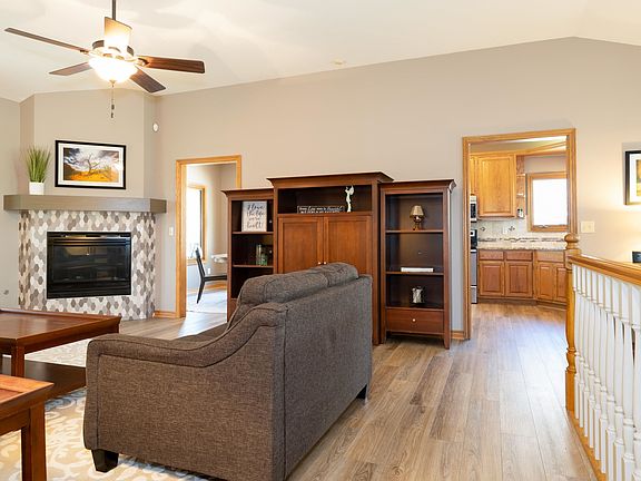 NO SPECIALS! MAIZE SCHOOLS! Welcome home to this freshly updated and well-maintained home with nearly 3200 total living space. What's new, you ask? In 2018 a new HVAC system was installed. New windows, back decking, railing and screen, garage door with opener and new door and storm doors (front and back) were added in 2021. In 2022, new custom blinds, exterior paint and guttering, and a new hot water heater were completed. In 2023 both fireplaces were updated with new tile and mantles. As you are greeted at the foyer, you will notice the large formal dining room, comfortable living room with gas fireplace, and lovely kitchen with all appliances conveying with home and two eating areas. Off the kitchen eating area, notice the covered upper deck and imagine how nice it will be enjoying your peaceful mornings and beautiful sunsets in the evenings. Finishing out the main level are the master bedroom with en-suite, 2nd bedroom, hall bath and main level laundry with wash sink. The large master bedroom with tray ceiling and oversized bay window overlooks the lush backyard with mature trees. The master bathroom with 2 separate vanities has plenty of storage and closet space. In the freshly painted basement you will find the open family room where everyone will enjoy gathering for holidays or game night and the wet bar for an added bonus! There are two additional bedrooms and hall bathroom with great storage in each. The 'flex space would make a great office, workout room, hobby room or non-conforming 5th bedroom. The oversized 2 car garage with new garage door and opener will fit large vehicles. The built in shelving in the garage remains with the home and the tall garage ceiling could easily accommodate extra storage needs. In 2022 the exterior was repainted, and new matching guttering, and gutter covers were installed. The desirable Deer Trail neighborhood offers two ponds, 14 acres of commons area, a beautiful community swimming pool, playground equipment, tennis/pickleball courts, a 3 par golf course, frisbee golf and over 1/2 mile of walking paths. Schedule your showing today!