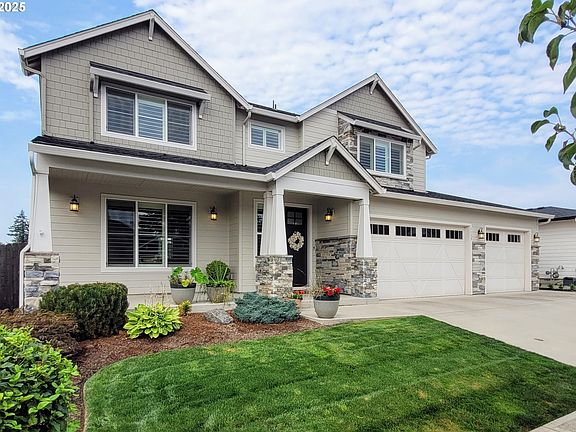 Impeccably maintained two-story home in the sought-after Cloverhill North neighborhood of Ridgefield! This 3199 sq ft home features 6 bedrooms, or can be versatile serving as family room, office, or other use. Beautiful, engineered hardwood floors extend throughout the home, with carpet in 4 bedrooms and tile in the bathrooms. Not to miss in this upgraded home are 9 ft ceilings, architectural features, stainless appliances including gas stove, spacious 3 car garage with EV wiring and built-in storage racks, spacious backyard with a 5-person hot tub. The welcoming Cloverhill North neighborhood is a quick trip to I-5, walkable to grocery and shopping, and has it's own peaceful walking trail and park. It is also adjacent to beautiful Windy Hills Winery! This home is truly a gem!