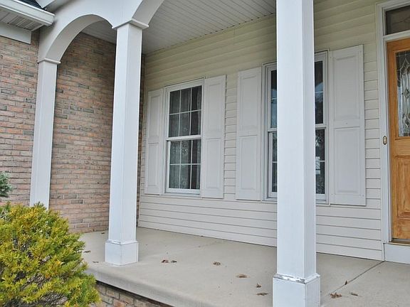 This one story 4BR, 3.1BA beauty sits peaceful overlooking a tranquil lake. Built by Steve Martin, this home has 9' ceilings, lots of upgrades & special features. The entry door has lovely leaded glass windows above & flanking the door and opens to a columned dining rm with tray ceiling & deep crown molding. Gorgeous cherry floors highlight the foyer, kitchen/EA, half BA & hall. Showcasing the huge great rm is a Heat-n-Glo gas log fireplace flanked by windows, w/tile surround & white mantel w/dentil molding. Recessed lighting abounds. The dream kitchen has abundant maple cabinetry, large center island, corian counters & walk-in pantry. All appliances stay & the dishwasher is elevated for easy access. The spacious eating area is open to great rm & has bay window with sliders to a deck overlooking backyard & lake. A wide hallway leads to half bath, 2 car attached garage & spacious 1st floor laundry w/lots of cabinets, sink, bench w/storage & side door to driveway. On opposite end of home is master suite w/two walk-in closets, a glamour bath w/separate maple vanities, whirlpool tub, shower & linen closet. There are two add'l bedrooms + one full bath. Lower level offersl a 4th bedroom, full bath, huge rec rm + bonus area, wet bar w/microwave & bar refrigerator, media cabinet & sliders to patio. The unfinished area is huge & offers lots of possibilities. Irrigation system in front yard.