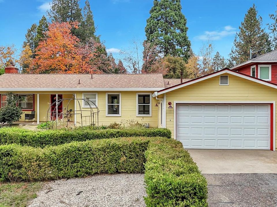 Charming Home Near Nevada Union High School! Welcome to this well-kept 2-bedroom, 3-bath home on a level half-acre lot conveniently located only 2.5 miles from both Grass Valley and Nevada City. The property is a gardener's dream, featuring mature fruit trees, raised garden beds, and a majestic Sequoia tree that provides an incredible focal point and year-round beauty. Inside, the main home offers a bright, comfortable layout with fresh interior paint and a screened-in porch that works perfectly as an office, reading nook, or hobby space. A large picture window in the dining and living area frames the stunning backyard, currently glowing with vibrant fall colors. A converted portion of the oversized garage adds a spacious flex area with its own full bathroom, ideal for a home office, art studio, homeschool room, or potential future ADU (buyer to verify). The garage still accommodates two vehicles, maintaining full function and storage. Additional highlights include a newer roof (installed in 2024) and clear septic and pest reports for peace of mind. A wonderful blend of location, flexibility, and natural beauty!