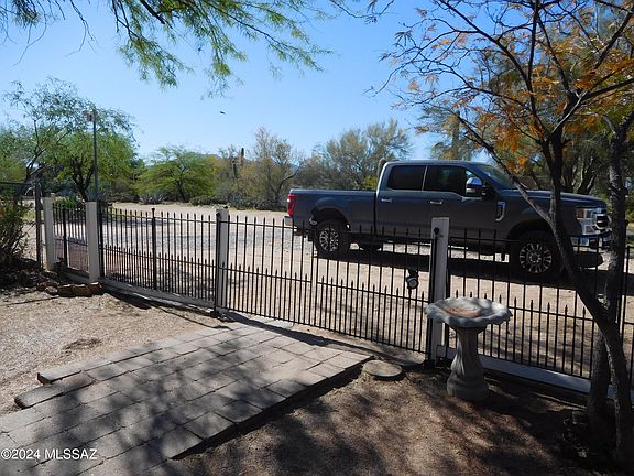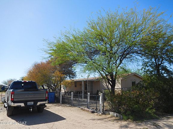 1.04 acres of flat, mostly cleared land with a few saguaros, trees and bushes. The whole property is fenced with 3 separate fenced areas - a good sized dog run behind the home with a doggy door in the laundry room. A large area around this lovely 2bed/2bath home that features a lengthy covered porch, canopy trees and fountain. And a very large fenced area for the several RV hook-up zones. Two sheds are on the property, one is about 10x10, the other is about 10x20 & has electricity. Home is in very good shape with some newer appliances and HVAC. Bedrooms are like two masters at opposite ends of the house - both have walk-in closets & full baths. Stove, Refrigerator, Freezer, Dishwasher, Microwave, Washer & Dryer come with this move-in ready home. Plenty of room for cars, trucks and RVs. property is located at the end of a cul-de-sac on the right side. Xfinity box on front of house for high-speed internet & excellent cell phone servicde. Avra Valley water, Trico Electric, Propane Tank, & weekly garbage pick-up. NO HOA. This home has had TLC and owner is even willing to carry with sizeable down.