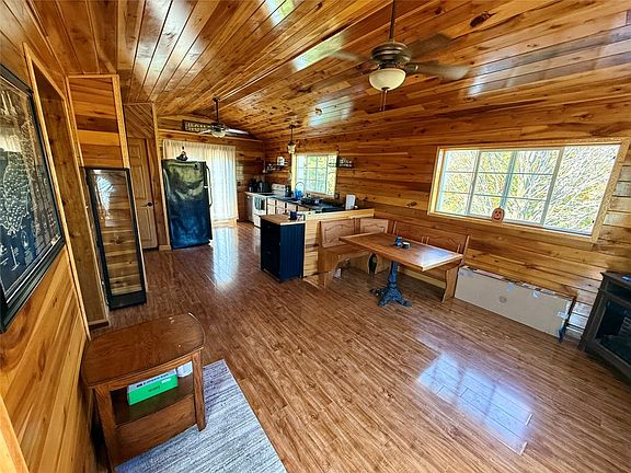 Escape to the peace and quiet of the countryside with this cozy 1 bed, 1 bath home nestled on a 0.69-acre lot. Perfectly blending rustic charm with modern comfort, this move-in ready home features warm, wall-to-wall wood finishes that create a welcoming cabin-like feel. Step outside the kitchen onto a small private deck, the perfect spot for morning coffee or evening sunsets. The large yard offers endless potential for gardening, outdoor entertaining, or simply enjoying the natural beauty of the land. A small creek trickles through the back of the property, adding to the tranquil setting. Downstairs, you'll find a workshop area that has its own climate control. Whether you're looking for a peaceful full-time residence or a weekend getaway, this charming country retreat is ready to welcome you home.