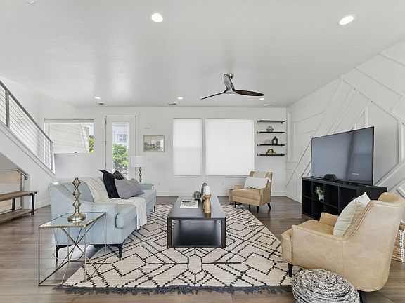 Welcome Home to the Heart of Daybreak! This stylish townhome offers the perfect blend of modern convenience and comfortable living in an unbeatable location. You'll be at the center of it all, just minutes from Trax, Oquirrh Lake, the upcoming Downtown Daybreak featuring Megaplex movie cinema, and the new Salt Lake Bees Stadium. You'll be at the center of it all. Inside, you'll love the open-concept floor plan filled with natural light from large windows. With three spacious bedrooms and thoughtful design throughout, there's plenty of room to live, work, and relax. Enjoy two private balconies-ideal for entertaining, unwinding, or simply taking in the scenic views. The extra-deep two-car garage features a built-in workspace or separate storage area, and the fenced front yard boasts low-maintenance landscaping for easy outdoor living. With modern finishes, a smart layout, and a location that puts everything at your fingertips.