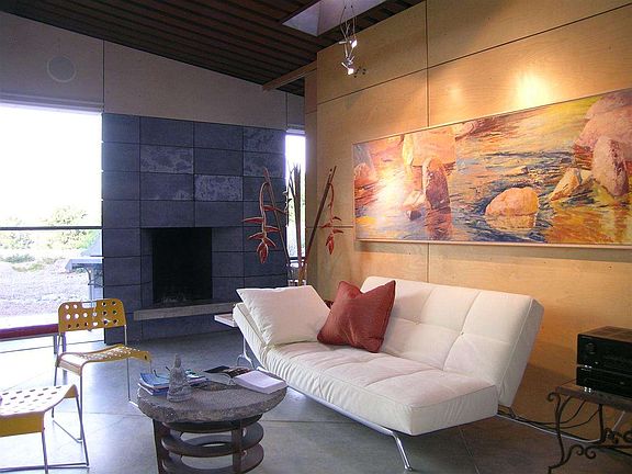 Modern or contemporary, whatever you call this living work of Art designed by New Mexican architect Jeff Harner it is truly a unique, one of a kind dwelling tied into the earth & environment. This light filled home features views of the Sangre de Cristo Mountains, surrounding hills, terrain & vegetation, built using glass, steel & concrete on two acres just minutes from town down W. Alameda. Featured in Santa Fe Trend magazine 2006