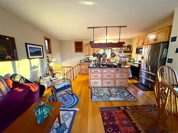 House overlooks 100 acres of town designated open space. Location is very quiet and private. Desirable school district. Passive solar contemporary split level, 3 bedrooms and 3 extra rooms now used as studio, library and office. Plus an out-building for storage or office. Walkout basement has self-contained wine  cellar and newly finished floor. Freshly painted exterior, New septic tank, new chimney liner, solar panels.
