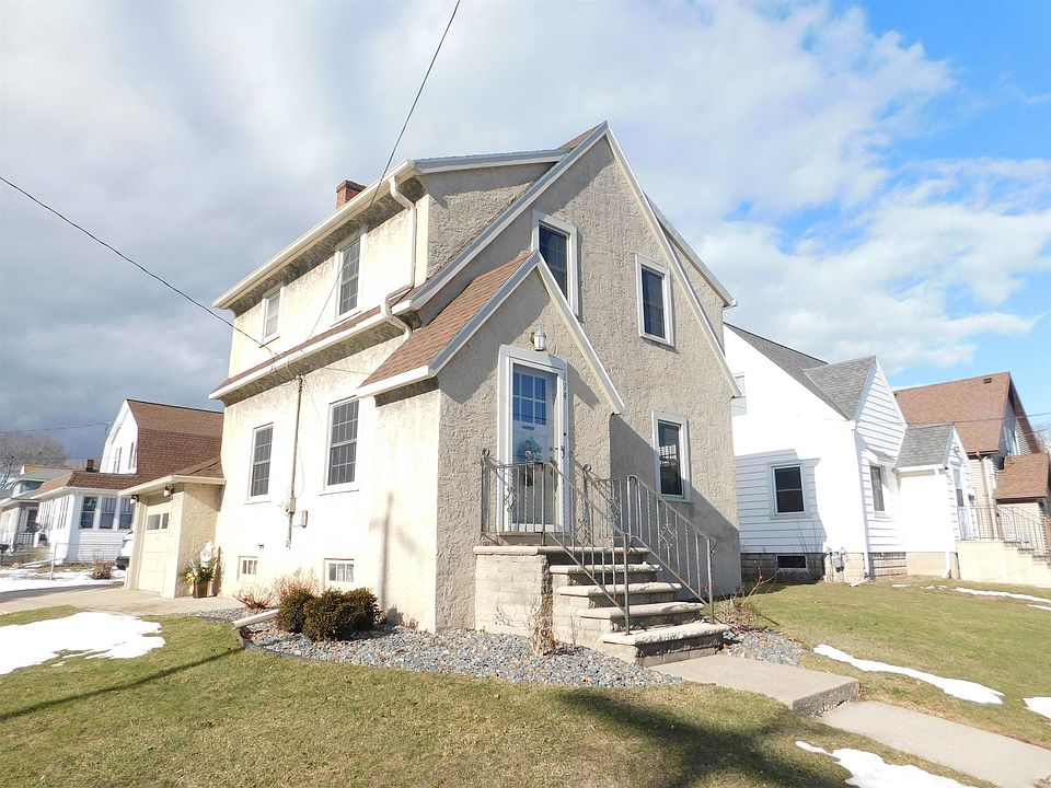 Cute as a button! Beautiful original woodwork, arches, curved corners, wood-burning fireplace & hardwood floors. Updated kitchen: tin ceiling, new cabinets w/pantry, SS refrigerator, gas range, tiled backsplash, island w/wheels & flooring. Bath is completely updated & has linen closet in hallway. Newer carpet; bedrooms & closets have hardwood floors. Rec room in LL w/fruit cellar, bar stools included, washer & dryer w/laundry sink. Shed included for extra storage, patio & extra parking pad. Added attic insulation 2010, furnace 2000, gutters & trim, new landscaping & patio in 2020. HWH 2019, windows 1997. Pride of ownership shows in this cozy home.