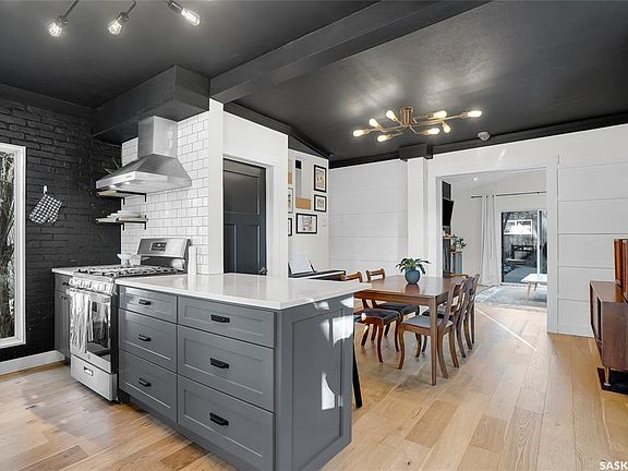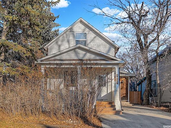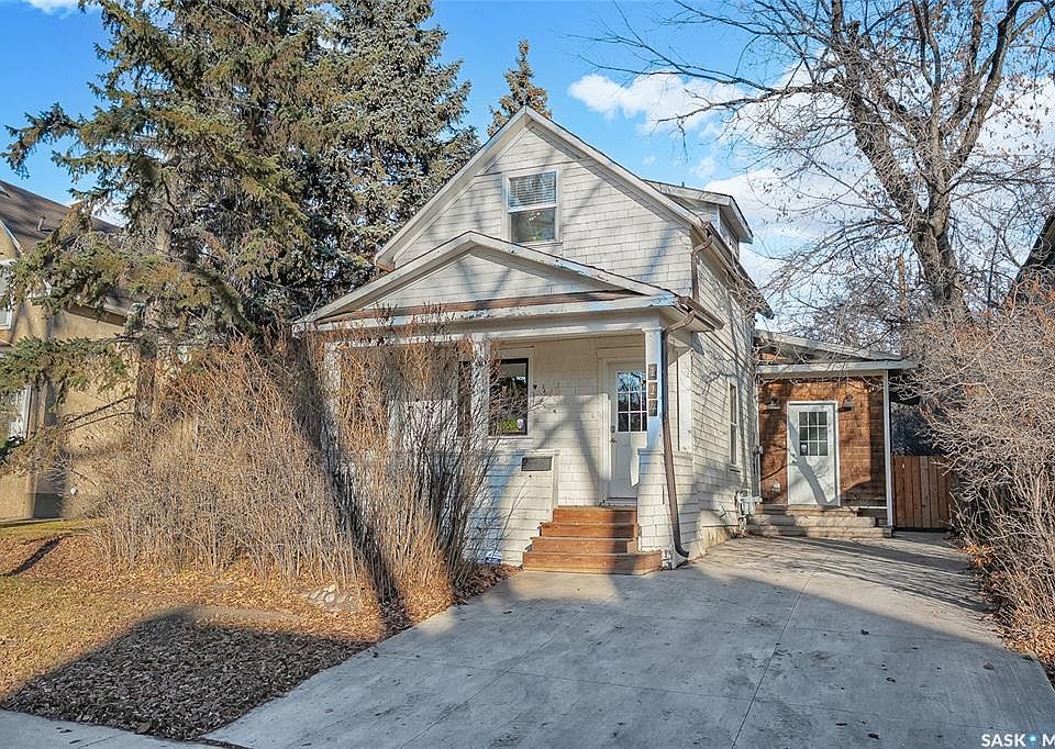 Welcome to this charming one-and-a-half-storey home in Caswell Hill. Start your day with coffee on the sunny, south-facing front porch. The renovated kitchen boasts quartz countertops, stainless steel appliances including a gas range, hood fan, and fridge with water/ice dispenser, plus an eat-up peninsula and brick feature wall. Gorgeous engineered hardwood floors flows from the dining room into the bright living room with its vaulted ceiling, fireplace, and sliding patio door to the yard. The main floor also features a unique 3-piece bathroom with copper penny flooring and backsplash, as well as side entry and laundry. Upstairs, you’ll find two cozy bedrooms with brand-new skylights and another stylish 3-piece bathroom, with a slight view of the Bessborough Hotel from one bedroom window. Extras include a front concrete driveway, quality windows, updated doors, koi pond, new fence and deck, garden boxes, firepit, and gazebo for summer evenings. A spacious 24 x 24 garage is ready for your finishing touches, perfect for cars and storage. This little gem is not to be missed!