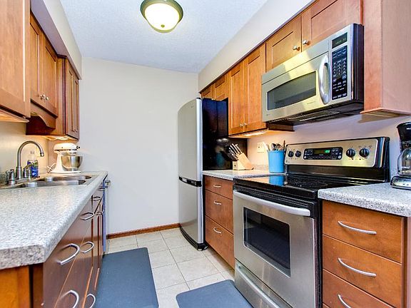 Hard to find 3 BR Townhome in a Top-Notch, wooded setting. Small, private community across the street from the popular Silverwood Park. Private patio space in front & deck off mstr BR with wooded views. Large bedrooms & closets. Classy KI with tile floors, cherry cabinetry & SS appliances. Recently remodeled lwr lvl FR, 3rd BR & bath w/quality carpet, recessed lighting & white trim. Skylights add natural lighting to KI, DR & bath. Newer furnace, AC & electrical box. Mounds View Schools!