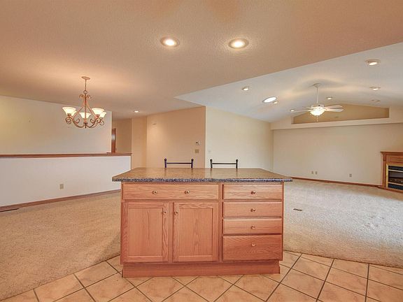 Beautiful setting overlooking the Mississippi River with the benefit of not being in a flood zone. You will be impressed when entering from the front door or from the zero entry garage leading to the open concept living room/kitchen/dining area. The large living room has a fireplace and a skylight offering additional daylight. A well designed kitchen making good use of space. The island has seating as well as storage. A full pantry cupboard and ample additional cupboards, all with pull out lower shelving. Matching GE refrigerator, stove, dishwasher and microwave. Off the living room/kitchen area is a four season room and an attached deck offering beautiful panoramic views of the Mississippi River. The bright primary bedroom has a large walk-in closet. Extra large bathroom with washer and dryer as well as a linen closet. Finished lower level with one conforming bedroom and one non-conforming bedroom with an extra large walk-in closet which can provide additional storage. Huge family room with walk-out to deck. Full bathroom with tub shower combo. Separate HVAC room with additional storage. Single car garage with water hook up, drain and water softener closet. This is a unique setting not often offered for sale.