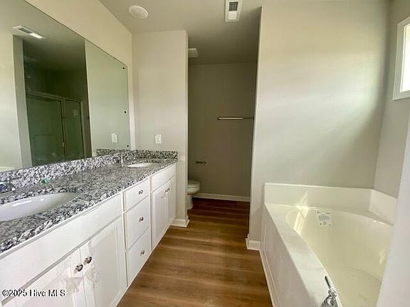 This 3 b 2 ba new home is situated on a +/- 1.2 acre lot in the new phase Aarons Place. Interior amenities include a stunning kitchen with a center island, walk in pantry, and an adjoining dining area. Large master suite with a WIC and luxury bath that includes a separate shower and soaking tub. Two gracious alternate bedrooms. Other amenities include LVP throughout the entertaining areas and gas logs in the great room. Exterior amenities include a rear covered patio and an adjoining grilling patio. Builder is offering a $5000 incentive.