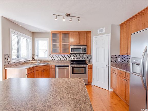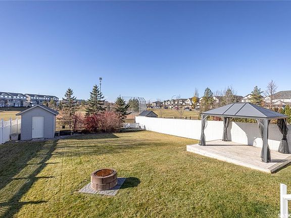 Pride of ownership is evident throughout! Check out this 4 bedroom, 4 bath, 2 Storey located on a family friendly street in Hampton Village backing Al Anderson Park. Upon entering, you are greeted with a spacious foyer. The main floor features an open concept, great for entertaining and family time. The kitchen has an island, a corner pantry, stainless steel appliances and a separate eat-in dining area. The main floor also offers a 2-piece bath and main floor laundry. On the second level you will find a spacious primary bedroom with a walk in closet and a 3-piece ensuite, as well as 2 additional bedrooms and a 4-piece bath. The lower level is totally developed, featuring a family room, a bedroom with a walk in closet, a 3-piece bath and storage area. The double attached heated garage, with direct entry, has been freshly painted. Enjoy the beautiful Saskatchewan sunsets and view of the park, on the maintenance free covered deck. Additional features: gazebo, fire pit, newer shingles, central air conditioning, under ground sprinklers, RV parking, high efficiency furnace and water heater.