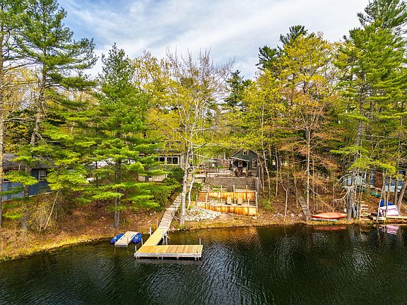 An incredible opportunity to own a beautifully remodeled year-round waterfront home that perfectly blends modern finishes with classic camp-like charm. This thoughtfully updated retreat features a bright, open floor plan with hardwood floors, a custom granite kitchen with stainless steel appliances, gas range, and gas fireplace, plus two first-floor bedrooms, a full bath, and a laundry room. The cozy living room with a stunning wood-burning stone fireplace and a year round enclosed porch overlooking the water deliver ideal spaces to unwind. Upstairs, you'll find a spacious bedroom and attic storage, while the finished lower level provides flexible space for a home office, gym, or rec room. Outside, the magic continues with a large dock and float system, beautifully hardscaped patios and decks within a fenced yard, and multiple inviting areas for entertaining or relaxing by the fire pit, surrounded by lush landscaping and tranquil water views—this is the ultimate Maine camp lifestyle, ready to enjoy all year long. The home will convey furnished minus some exclusions.