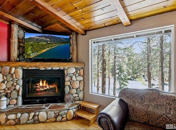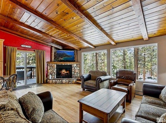 Welcome to this spacious condo nestled in the heart of Stateline, NV. This 2-bedroom, 2.5-bathroom home offers a unique blend of comfort and adventure. The living room, adorned with a cozy fireplace and high beam ceilings, opens up to a large dining area, perfect for entertaining. The fully equipped kitchen is ready to handle any culinary challenge. Step out onto the forest view decks and immerse yourself in the beauty of nature, as this home backs directly onto the woods. For those who love outdoor activities, you'll appreciate the easy access to an outdoor pool, hot tub, tennis and paddleball courts. Convenience is key, with a washer/dryer provided and the property located less than a mile from Stateline casinos and just a mile from the Heavenly gondola. The lake and beach are also just a mile away, making this the perfect base for your Nevada adventures. Experience the best of Stateline living in this large condo that truly has it all.