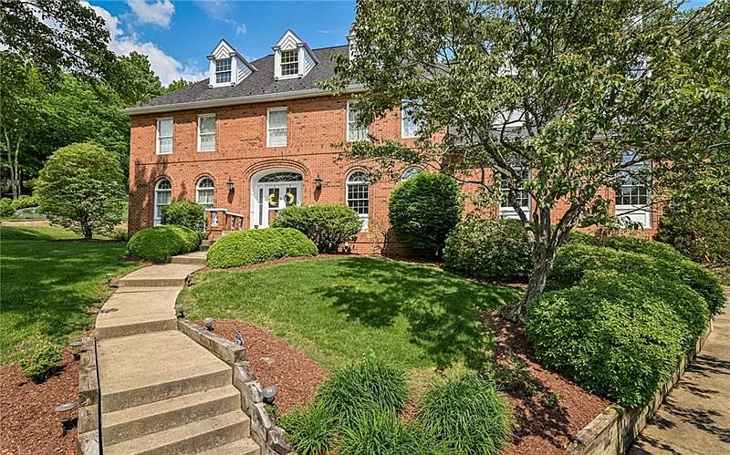 Lovely center hall brick colonial home on a sought-after street in Forest Hills. This home is situated at the end of the cul-de-sac with a tucked-away integral 3 car garage with a level driveway. This large mini-mansion boasts a large eat-in kitchen with a walk-out patio. Sunroom and large family room off the kitchen with a glass divider. Quiet den perfect for a home office. A large living room and formal dining room. The second floor features a beautiful center hall that opens to vaulted ceilings. Tucked away large laundry room. Large owner's suite w with fireplace, vaulted ceiling and oversized bathroom with his and her sinks, Whirpool tub and separate shower, vanity and walk-in closets. 3 additional bedrooms and a main bathroom. The lower level features an L-shaped room with bar entertaining space, a full bathroom, and exercise space. There is a movie room with visual equipent that stays with the sale. Walking distance to Trinity Luthern and community pool.